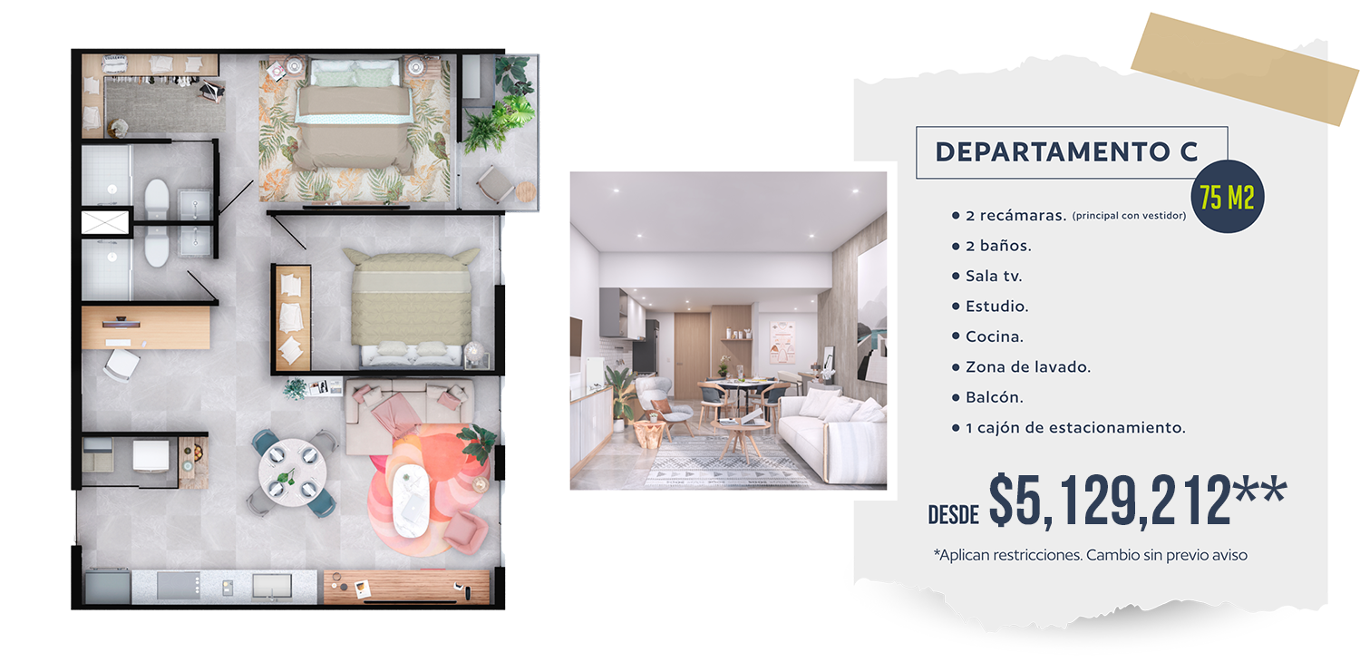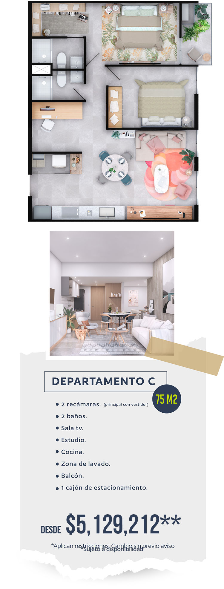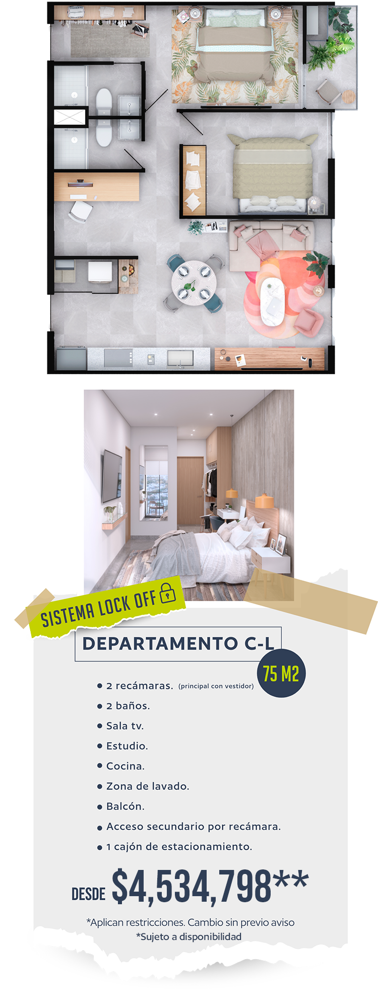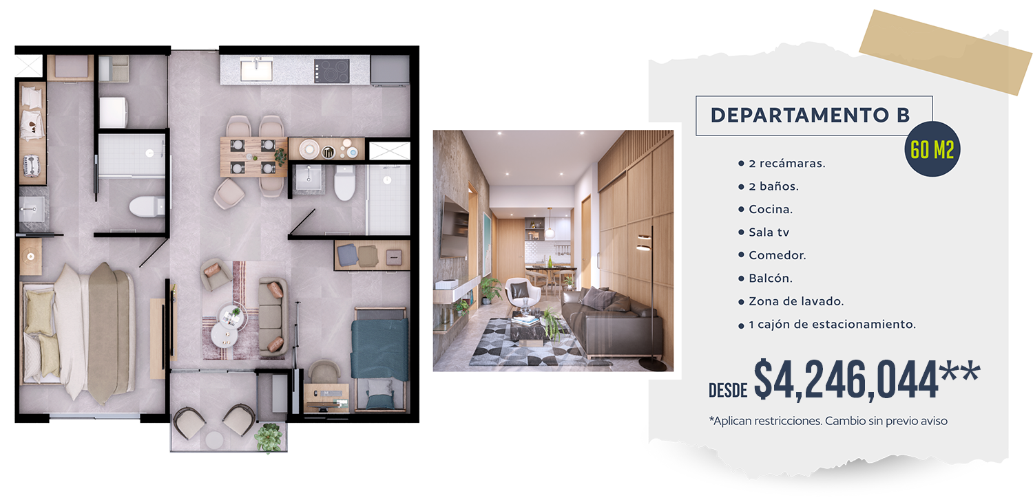 Las imágenes que se muestran son meramente ilustrativas y no representan una oferta vinculante y pueden variar del proyecto final. El desarrollador se reserva el derecho de realizar cualquier cambio o adecuación conforme el proyecto y planos autorizados por las autoridades respectivas.